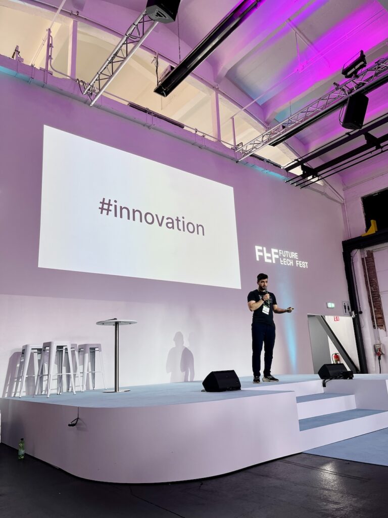 Beim Future Tech Fest 2025 präsentierte das Team rund um Haris, Bek & Illi nicht nur am Messestand seine Lösungen, sondern brachte auch auf der Bühne die Zukunft der KI nach vorne.